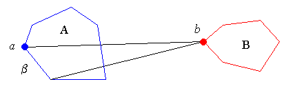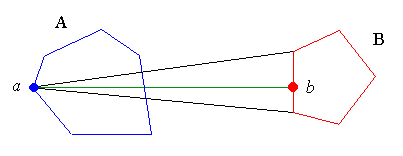 Notice however that lemma 2 applies only to a, the furthest point of A relative to b : as illustrated below, the closest point b of B relative to a might not be a vertex of B.