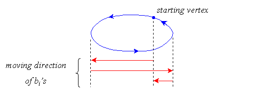 As shown above, moving from b1 to b2 follows a counterclockwise path on the boundary of B, while b3 to b5 implies a clockwise traversal.  Because no movement occured from b2 to b3, b3 is called a stationary point.
